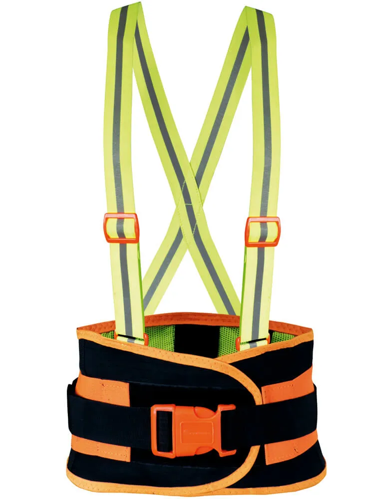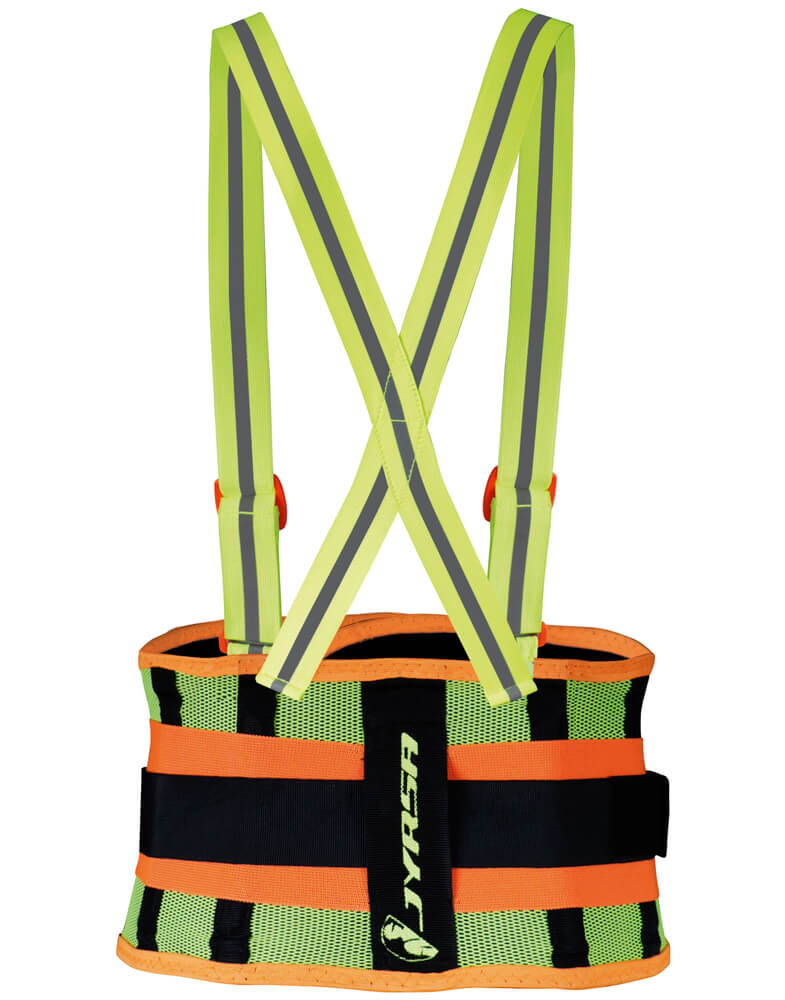 - Tirantes elásticos de alta visibilidad de 38 mm (1 1/2”) con hebilla de ajuste y reflejante textil gris de 3/8”.