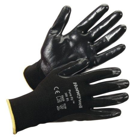GUANTE NEGRO DE NYLON CON PALMA DE NITRILO SOLIDO.